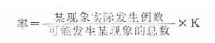 表示在一定条件下,某种现象实际发生的例数与可能发生这种现象的总数之比,用以说明某种现象发生的频率,故又称为频率指标,以100,1000,10000或100000为比例基数(K)均可,原则上以结果至少保留一位整数为宜,其计算公式为: