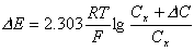 溶液离子活度测定 测定离子活度是利用离子选择电极与参比电极组成电池,通过测定电池电动势来测定离子的活度,这种测量仪器叫离子计。与PH计测定溶液PH值类似,各种离子计可直读出试液的PM值,不同的是,离子计使用不同的离子选择电极和相应的标准溶液来标定仪器的刻度。此外,利用电极电位和PM的线性关系,也可以采用标准曲线法和标准加入法测定离子活度。 标准曲线法是在同样的条件下用标准物配制一系列不同浓度的标准溶液,由其浓度的对数与电位值作图得到校准曲线,再在同样条件下测定试样溶液的电位值,由校准曲线上读取试样中待测离子的含量。该方法的缺点是当试样组成比较复杂时,难以做到与标准曲线条件一致,需要靠回收率实验对方法的准确性加以验证。 标准加入法是将一定体积和一定浓度的标准溶液加入到已知体积的待测试液中,根据加入前后电位的变化计算待测离子的含量。例如,某待测溶液加入离子强度调节剂后的体积为Vx,浓度为Cx,待测离子活度系数为f,则指示电极电位为 (1.18) 假定在待测溶液中加入体积为Vs,浓度为Cs的标准溶液,由于加入的标准溶液的体积远小于待测溶液的体积,新溶液的浓度近似为 ,其中 ,然后再用同一电极测定电极电位,得 (1.19) 由于测定条件相同,故K=K',离子强度基本不变,f=f'。这样,(1.18)和(1.19)两式相减,得 (1.20) 如果令 ,则(1.20)式可写为 (1.21) 式中S为电极的响应斜率,意即单位PM变化引起的电位值变化。这样,由两次测定的电位差ΔE和加入的标准溶液的浓度,即可求得未知溶液的浓度Cx。在实际测定时,两次测量都是电池的电动势,由于测量条件相同,参比电位和液接电位都相同,因此,式(1.21)中ΔE实际上是两次测量的电池电动势之差。 值得注意的是,应由离子选择性电极测得的物质含量为活度,而分析上常常要求浓度,浓度C和活度a之间的关系为a=fc,f随试液中离子强度而变化。这样就无法求得溶液的浓度,为了使试液中离子强度保持一致,通常采用的办法是在试液中加入惰性盐,使离子强度恒定,该惰性盐称为离子强度调节剂。由于离子强度调节剂加入量较大,这样试液的离子强度基本上由离子强度调节剂所决定。有时试液中还要加入PH缓冲剂,消除干扰的掩蔽络合剂。例如测定水中氟离子,为了稳定PH在一定的范围,并消除铁、铝离子干扰,需要加入PH缓冲剂、络合剂、惰性盐的混合溶液,称为总离子强度调节缓冲剂(TISAB)。 离子选择电极除了对待某特定离子有响应外,溶液中共有的离子对电极电位也有贡献,形成对待测离子的干扰。此时,电极电位可写成: (1.22) 式中I表示待测离子,j表示共存离子,kij称为选择系数,它表示电极对主要离子的响应与对干扰离子响应的倍数,该值越小,电极对待测离子的选择性越好。例如某PH玻璃电极对Na+的选择性系数KH+, Na+=10-11,表示该电极对H+的响应比对Na+的响应灵敏1011倍,Kij的倒数称为选择比,表示在溶液中干扰离子的活度aj和主要离子的活度ai之比为多大时,离子选择电极对两种离子活度的响应电位相等。Kij虽然是一个常数,但是受很多因素影响,且无严格的定量关系,可以通过实验测定。 |