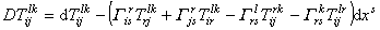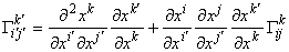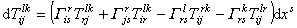 [挠率张量]  (1)式中的变换规律包括两项:第一项不依赖于旧坐标系中的;第二项依赖于,并和张量的变换规律的形式完全相同.由于第一项对两个下标是对称的,它一般不等于零,所以不是一个张量.但是