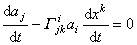 设曲线的方程为xi=xi(t), 它的切矢量为,它沿曲线平行移动的条件为
