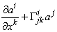 在普通导数中,对于已微分的张量的每个指标再加上一项就可以构成任意张量的协变导数,对于逆变指标,这项的形式是