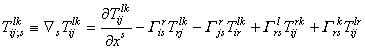 它们是关于指标k协变的二阶张量,分别称为矢量的协变导数,分别记作.