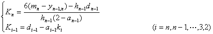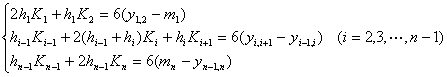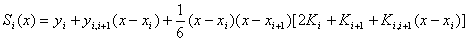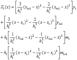 式中是待定参数。这样定义的函数S(x)在区间上满足三次样条函数的条件(i)和(ii),而且S(x)上有连续的一阶导数,同时