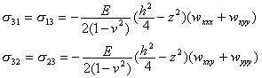 可忽略不计,根据应力平衡方程(26)与上下板面的边界条件,通过对z的积分可得
