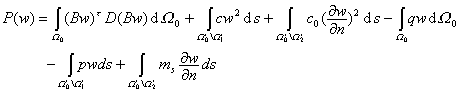 积分式中出现位移函数w的二阶偏导数,与平面问题仅出现位移函数u,v的一阶偏导数有本质上的不同.
