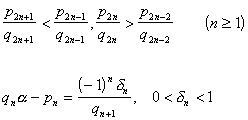 1° 渐近分数的等式与不等式