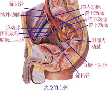 髂总动脉在骶髂关节前方分为髂外、髂内动脉。髂内动脉主要分支供应盆部。