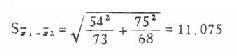 一、两均数的比较例7.6 某工业区卫生防疫站为掌握学龄儿童免疫球蛋白水平,对一批无结核及肾炎病史,一月内无急性感染,又未进行预防接种的学生作了血清IgM(mg/dl)测定,其中12岁男孩73人的X±S为125±54,12岁女孩68人的为153±75,试比较12岁男、女孩的IgM水平有无显着差别。 这里令男生为第1组,女生为第2组。 (1)检验假设H0:μ1=μ2;H1:μ1≠μ2。 (2)定α=0.05则对应于P为0.05时的u0.05值为1.96。 (3)求两均数的相差数X1-X2、两均数相差的标准误Sχ1-χ2及u值。此外,计算Sχ1-χ2的公式为