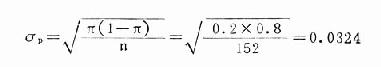 按惯例大量观察所得的率可当作总体率看待,则本例总体率π为0.2(20%),1-π=0.8,n=152