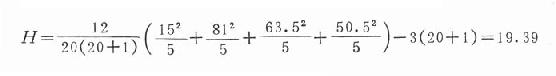 按式(21.4)计算。式中ni为各组观察值个数,N=Σni