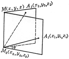 M0, M1, A1, A2为空间中不共面的四点,q 为二面角A1-M0M1-A2 (0£q£180°)