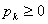 [离散分布与概率分布列]  如果随机变量只能取有限个或可列个数值x1 , x2 ,···, xn ···,就称为离散型随机变量。若记P()=pk    (k=1,2,···),则取值的概率分布由{pk}完全确定。称{pk}的概率分布列。{pk}有以下性质: