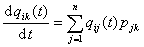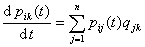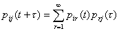 [切尔曼-柯尔莫哥洛夫方程]  pij(t)表示时间间隔为t系统从状态Ei转移到状态Ej的概率,那末