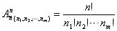 [不尽相异元素的全排列] 如果在n个元素中,有n1个元素彼此相同,又有n2个元素彼此相同L又有nm个元素彼此相同(n1+n2+L +nm=n)那末这n个元素的全排列称为不尽相异元素的全排列.其排列种数为
