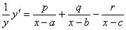 lny=pln(x-a)+qln(x-b)-rln(x-c)