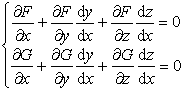 1° F[x,f(x),g(x)]≡0,G[x,f(x),g(x)]≡0,且f(x0)=y0,g(x0)=z0,