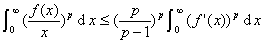 (8) 哈代不等式 设f(x)在[0,∞)上可微且上升,f '(x)连续,f(0)=0,p>1,则