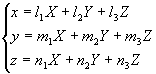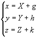 式中x, y, z为旧坐标;X, Y, Z为新坐标;g, h, k为新坐标系原点O¢ 在旧坐标系内的坐标 |