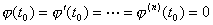 1°   设曲线C1的方程为Fx,y=0,曲线C2的方程为x = x(t)y = y(t),并设在点t = t0(即Ox0,y0))处,则两条曲线C1C2在点O构成n阶接触的充分必要条件是: