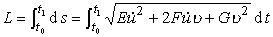 ds2=Edx22fdxdy+Gdy2 式中 E=1+ F= G=1+ ds为点M(x,y,z)处的弧的微分,ds2称为第一基本二次型,E,F,G称为第一基本量 ds2= 式中 E= F= G= 第一基本量E,F,G都在点M处取值. 曲面上每点(奇点除外)的第一基本二次型是正定的,即 E>0,G>0,EG-F2>0 |