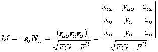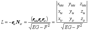 式中E,F,G为曲面的第一基本量,L,M,N为曲面的第二基本量。