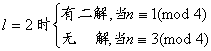 [二次同余式的解数] 设l>0, pn,若p为奇素数,则二次同余式