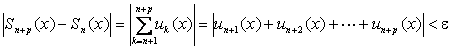 [柯西准则级数收敛的充分必要条件是:对任意的ε>0,都存在正整数N=N(ε),使得当nN时,对一切正整数p,下列不等式成立: