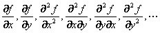 f '(x), f "(x), … , f (n)(x), … y', y", … , y(n), … |