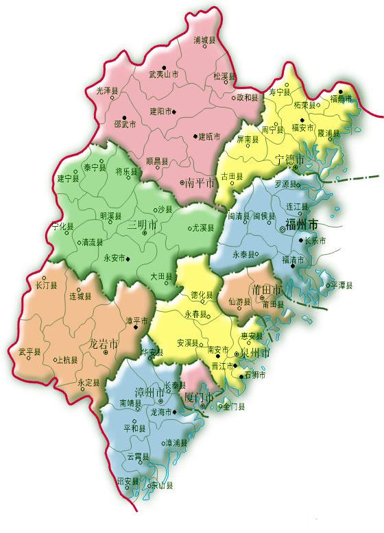 The Fujian Province area more than 120,000 square kilometers, presently govern 9 places levels city, 27 municipal districts, 14 county level cities, 45 counties, altogether includes 623 towns, 354 townships (18 ethnic townships), 129 subdistrict offices, the provincial capital is Fuzhou.