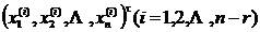 1 ° When r ( A ) = r < n , any non-zero solution x =( x 1 ,x 2 ,...,x n ) t of the homogeneous system of equations A x =0 can use its n - is represented by a linear combination of r linearly independent solutions x (i) = .![]()