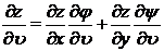 where u , is the new independent variable , w = w ( u , v ) is the new function , then the partial derivative is determined by the following equation :