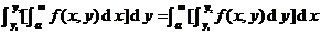 [ Integration over parameters ]   If the function f ( x , y ) is continuous in the region R ( ax < , y 1 < y < y 2 ) and converges uniformly in the interval ( y 1 , y 2 ) , but
