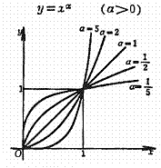 Curve initial point (0,0) and (1,1); When x>1, a bigger curve rise is quicker. When a is an even number, the function is an even function, in the sector in (0,¥) is the increasing function, in sector (- ¥, 0) for decreasing function. When a is an odd number, function for odd function and increasing function. |