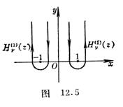 The integral route is in the shape of “ ” as shown in the figure, at the point