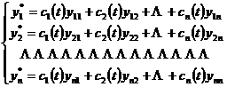 Let y 11 , y 21, … , y n 1 ; y 12 , y 22 , … , y n 2 ; … ; y 1 n , y 2 n , … , y nn be n of the corresponding system of homogeneous linear differential equations linearly independent solutions . Then a particular solution y 1 *, y 2 *, … , y n * of the inhomogeneous system of linear equations can be determined by the following form