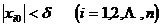 And outside a suitably small delta neighborhood of the origin (ie ), when t ≥ t 0 , (or ) then the equilibrium point x i =0 ( i =1,2, … , n ) of the system of equations (1 ) is asymptotically nearly stable .