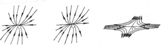 ( i ) The vector field of a point on C1 points from the outside of C1 to the inside, and the vector field of a point on C2 points from the inside of C2 to the outside ;