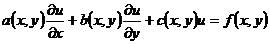is a linear equation . In a linear equation, the term that does not contain the unknown function and its partial derivatives is called the free term, such as f ( x, y ). If the free term is not zero, the equation is called inhomogeneous . If If the free term is zero, the equation is said to be homogeneous .