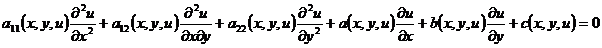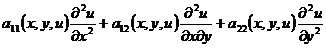 is the quasi-linear equation. In the quasi-linear equation, the part composed of the highest order partial derivative is called the main part of the equation. The main part of the above equation is
