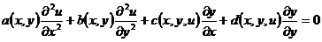 [ Quasilinear equation and semilinear equation ] If an equation is linear with respect to the highest order partial derivative of the unknown function, it is called a quasilinear equation . Such as