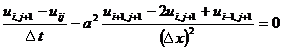 作成一个长方形的网格,记u(xi,tj)为uij,节点(xi,tj)为(i,j),在节点(i,j)上分别用