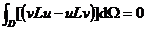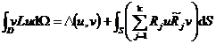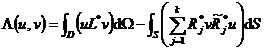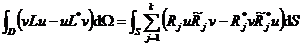式中(u,v)是一个D上的积分,其被积函数包含u,v的k阶导数;Rj和是定义在边界S上的两个线性微分算子.再将(u,v)分部积分k次得