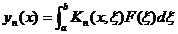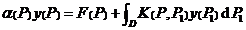It is called the n - dimensional Fredholm integral equation, where D is the region in n -dimensional space, P,P 1 Î D , and their coordinates are ( x 1 , x 2 , L , x n ) and , a ( P )= a ( x 1 , x 2 , L , x n ), F ( P )= F ( x 1 , x 2 , L x n )) and K ( P, P 1 ) = K ( x 1 , x 2 , L , x n , are known functions, and f ( P ) is an unknown function.