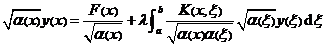 3° If there is a solution to the non-homogeneous Fr equation of the second kind, then the solution is given by (1) , and the weight function r ( x ) is used to multiply the integrand contained on both sides of the equation (2) .