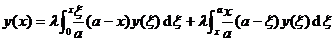 In the integral equation (7) , let x = 0 and x = a , the boundary value condition y (0)= y ( a )=0 can be directly deduced .