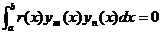 1 ° The two eigenfunctions ym ( x ) and yn ( x ) corresponding to different eigenvalues lm and ln are orthogonal on [ a , b ] with respect to the weight function r ( x ) , i.e.
