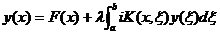 where K ( x , x ) is a square-integrable symmetric kernel over the defined interval, and is assumed to be a continuous function of two variables x , ξ over the square k 0 ( a ≤ x ≤ b , a ≤ ξ ≤ b ) , F ( x ) is a known uniform continuous function, y ( x ) is an unknown function, and λ is a parameter, there is a Schmidt formula