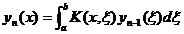 [ Stacked kernel × pre-solution kernel × Neumann series solution ] Let K ( x , x ) be the kernel, and the recursive formula