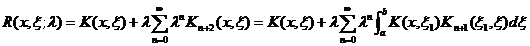The function R ( x , x ; l ) that does not depend on the free term F ( t ) in the formula is called the kernel (or the pre-solution kernel of the Fr equation), and the series (5) is called the Neumann series.