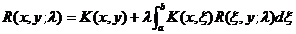 Therefore, when F ( x ) in equation (1) is replaced by K ( x , y ) , the above equation shows that there is a pre-solution kernel R ( as a function of two variables x , y and parameter l ) is equation (1 ) is the only solution.